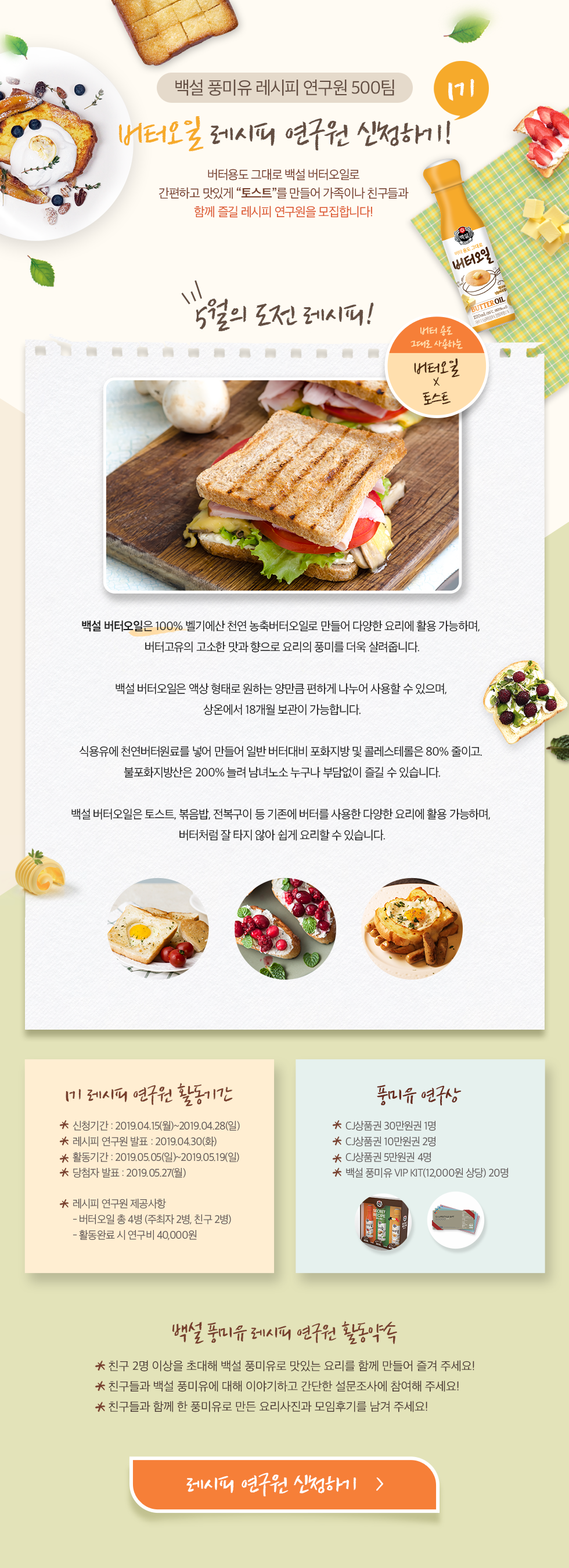[2019 백설 풍미유 연구 프로젝트] 1기 버터오일 레시피 연구원 모집