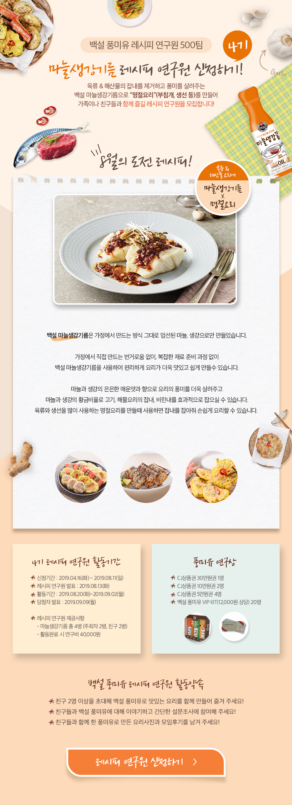 백설 마늘생강기름로 다양한 음식도 만들어 보고 아버지 간병으로 많이 힘들어 하시는 어머니께 제가 요리솜씨 없지만 불고기 요리 맛나게 만들어서 대접해 드리고 싶어요.