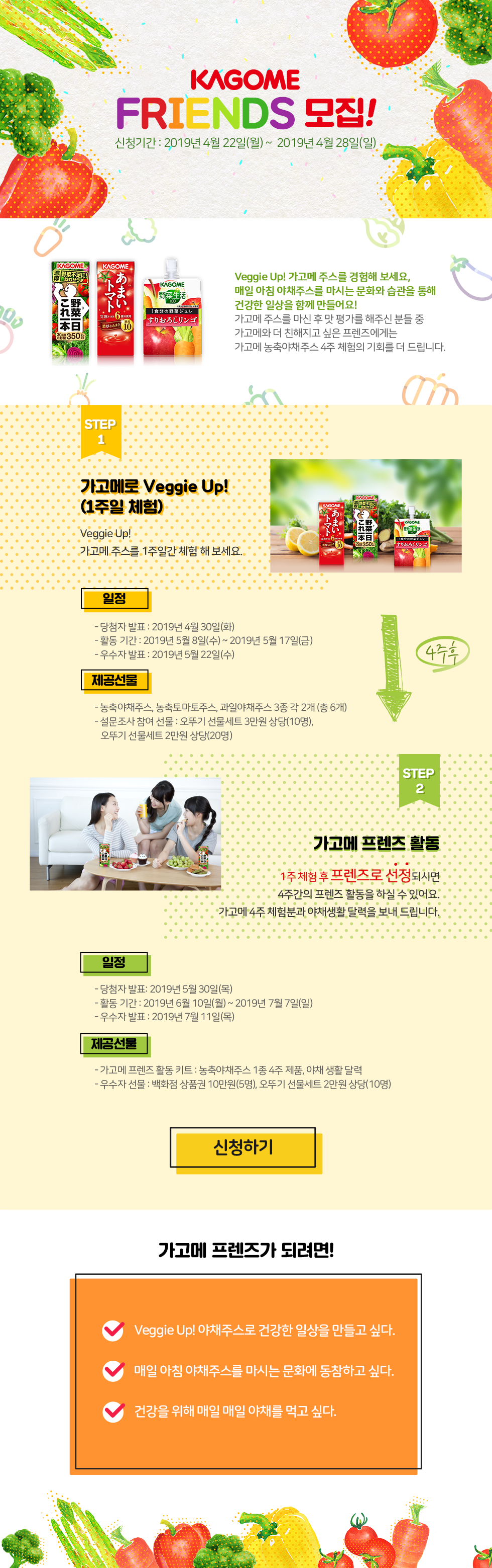 평소에 야채를 잘 안먹는편인데 건강을 위해서 챙겨먹어야 할것 같아요 야채주스로 건강한 일상을 만들고 싶어서 신청합니다 체험기회를 주신다면 설문조사 참여 솔직하게 참여하고