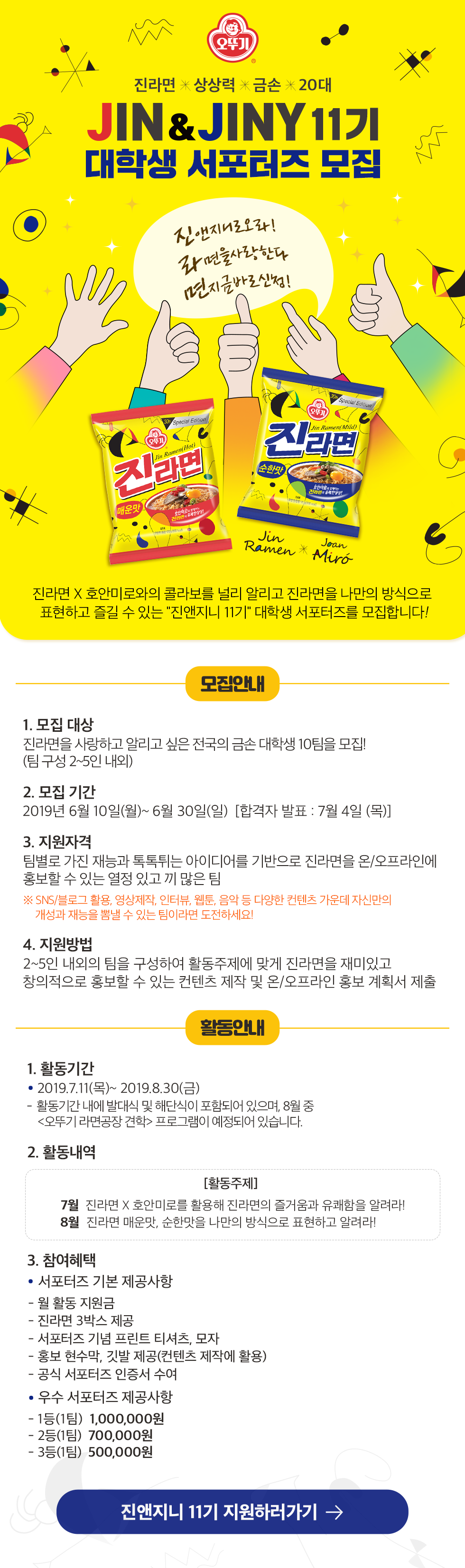 진라면 '진앤지니 11기' 서포터즈 모집!