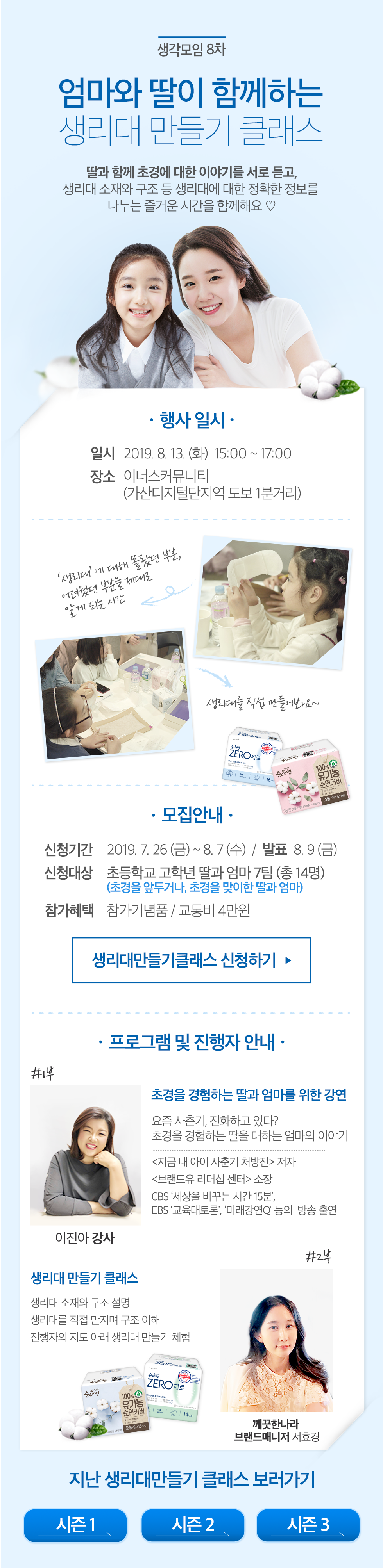 엄마와 딸이 함께하는 생리대 만들기 클래스 시즌4