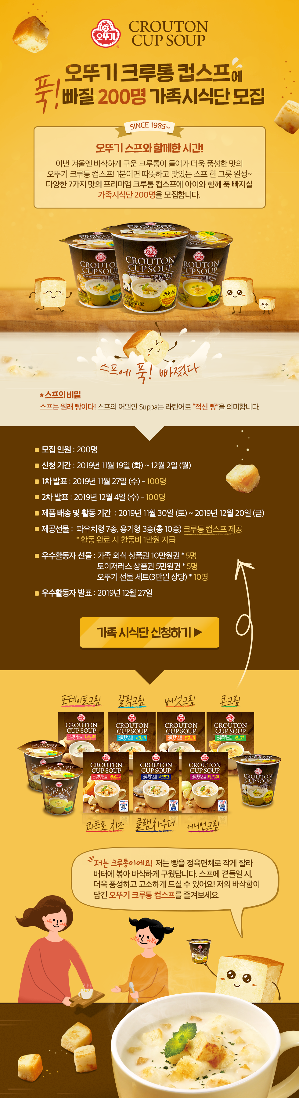 오뚜기 크루통 컵스프 가족시식단 200명 모집!