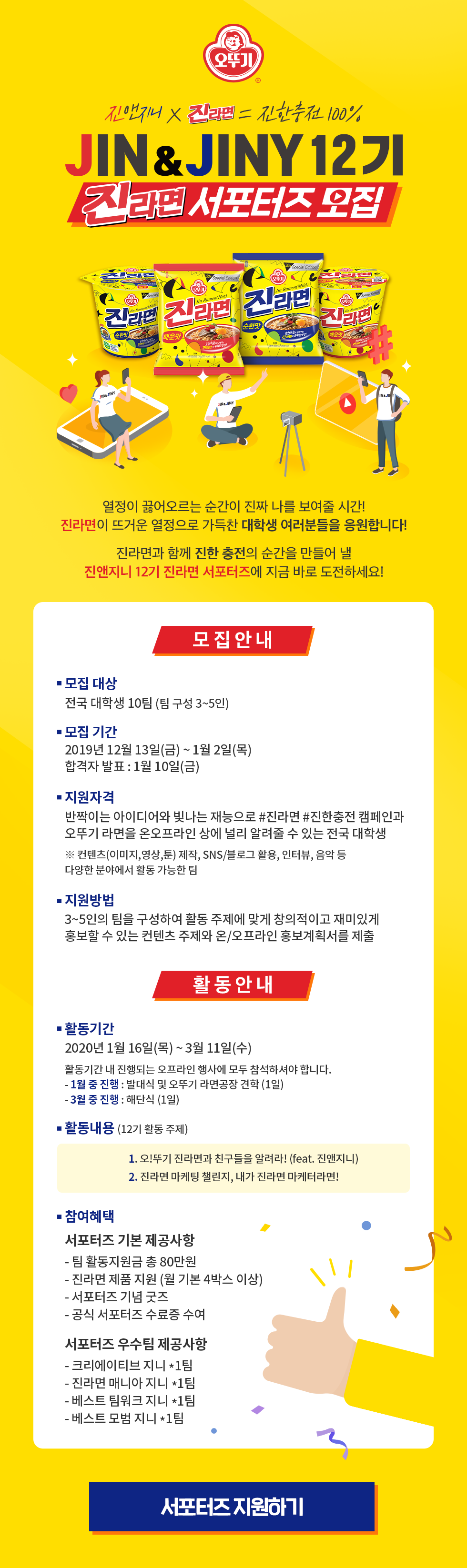 '진앤지니 12기' 진라면 서포터즈 모집!