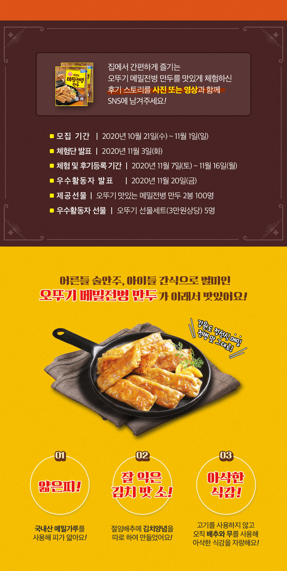 오뚜기 메밀전병만두 블로그 체험단 100명 모집!