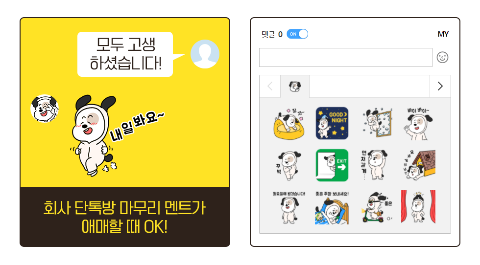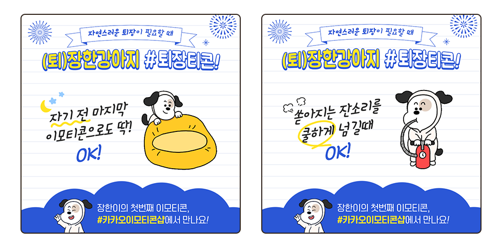 이젠 일상 속에서 (퇴)장한강아지 #퇴장티콘의 다양한 활용방법을 알려드릴게요.