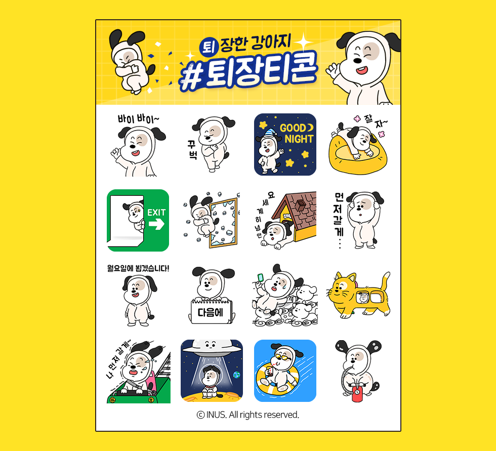 * 인스타그램 이너스커뮤니티 공식계정(@inuscommunity) / 장한강아지 공식계정(@geniuspuppy_official) 에서 진행중인 #퇴장티콘 출시 이벤트와의 중복 당첨자는 제외됩니다.