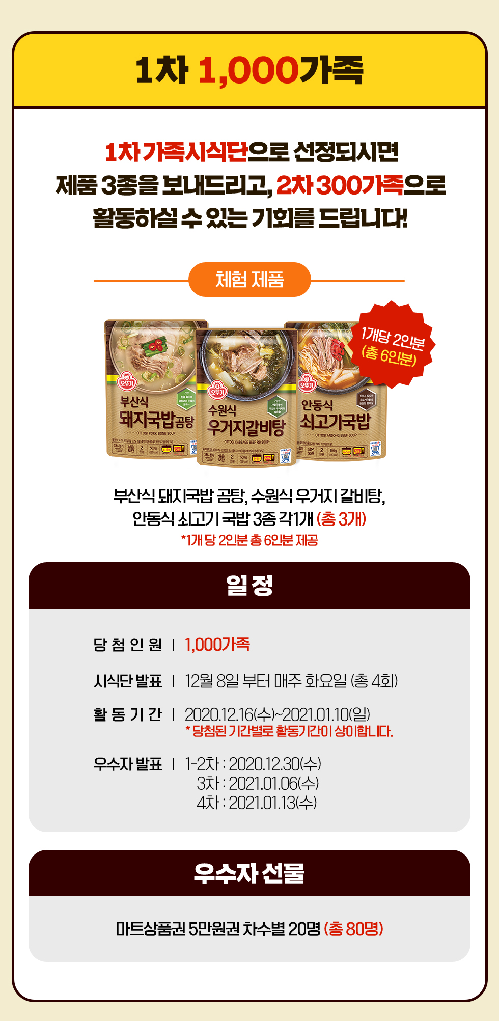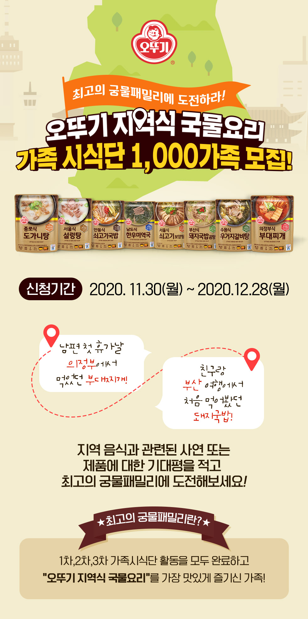 오뚜기 지역식 국물요리 가족시식단 1,000가족 모집!