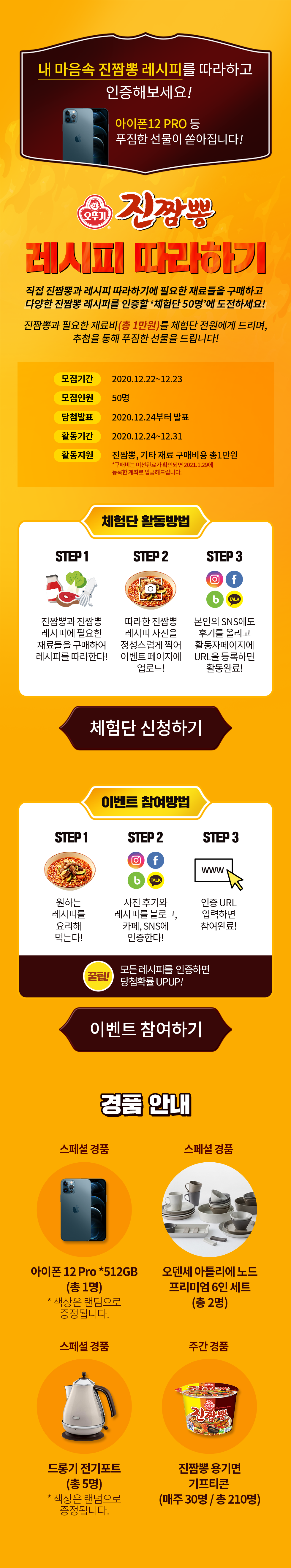 [오뚜기]진짬뽕 레시피 따라하기 인증 체험단 50명 모집!