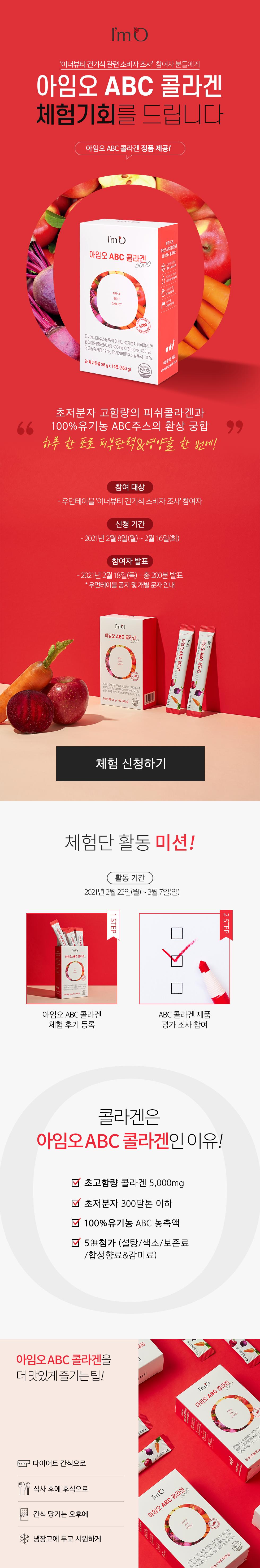 아임오 ABC콜라겐 체험기회를 드립니다.