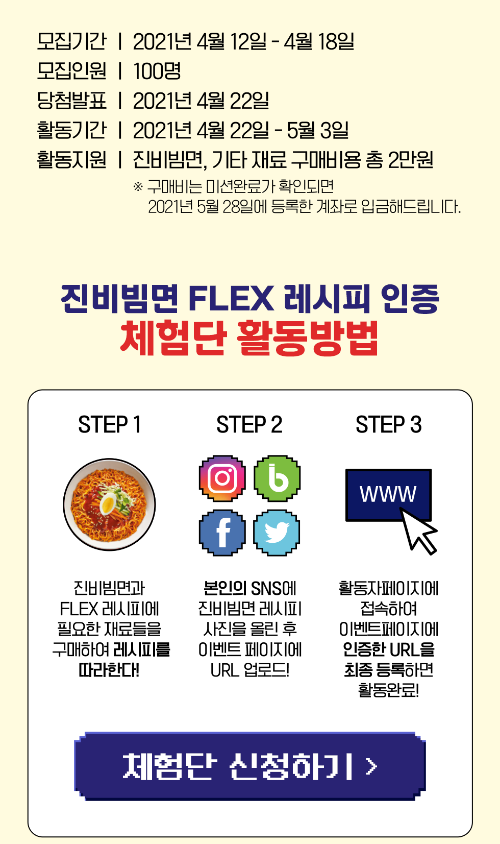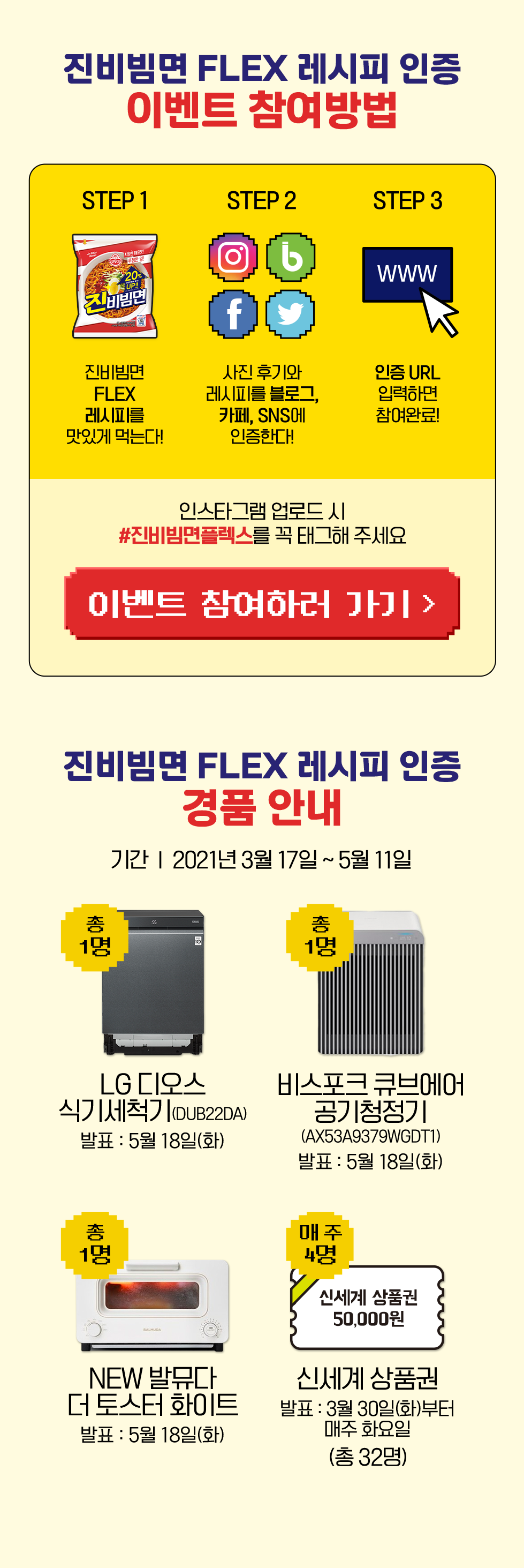 진비빔면 FLEX! 레시피 인증 체험단 100명