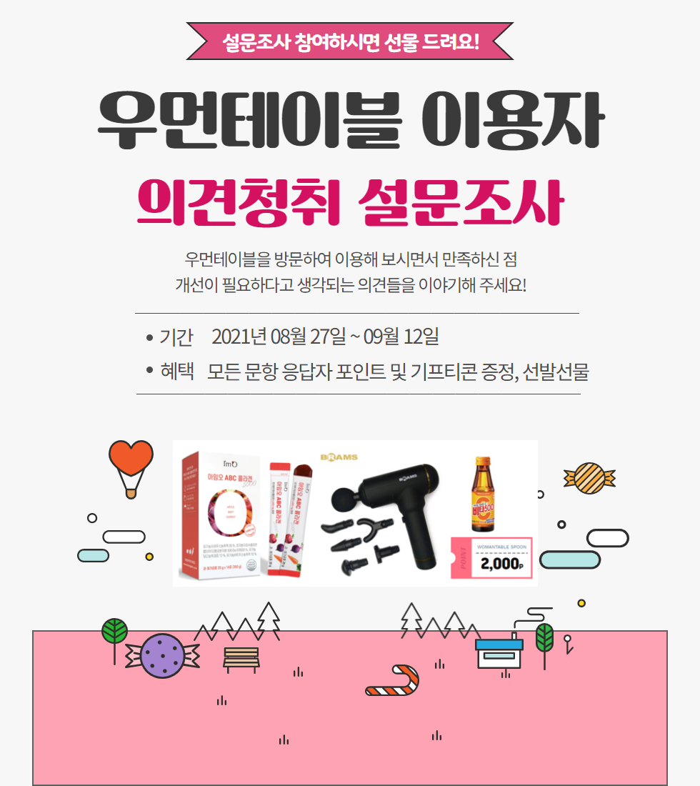 다른 브랜드가 아닌 바로 우리가 사용하는 '우먼테이블'에 대한 생각과 의견을 듣는 시간을 갖고자 합니다.