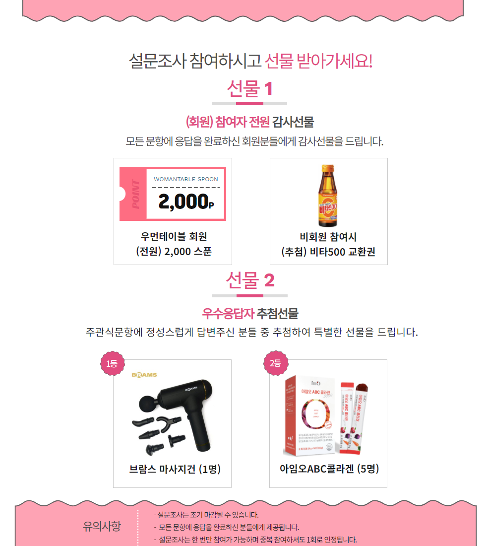 우먼테이블 비회원으로 참여: 추첨 비타500 기프티콘