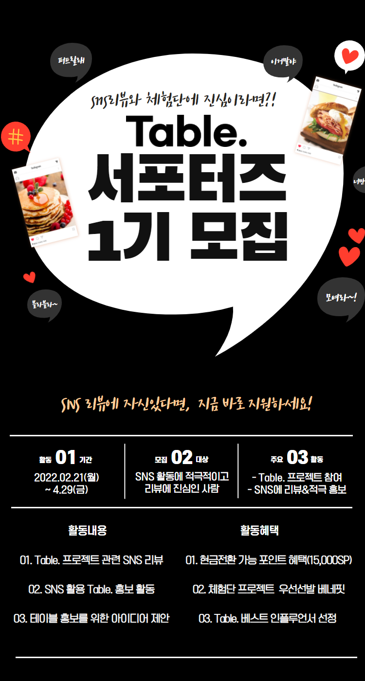 ✨❤2022년 Table. 서포터즈 1기를 모집합니다.